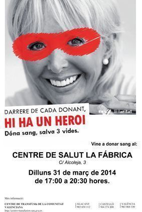 Tots els ciutadans que vulguen poden acudir, la campanya organitzada per al Centre de Transfusions de la Comunitat Valenciana, baix el eslògan: Darrere de cada donant “Hi ha un heroi, dona sang salva 3 vides”.