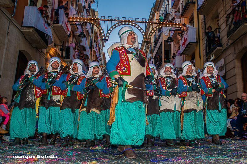Rafael Vilaplana va ser l’encarregat de dirigir a les tropes musulmanes en aquesta entrada triomfal a la vila cristiana. Amb un vestit negre i daurat, propi d’un sultà, va desfilar a cavall i amb un falcó al braç.