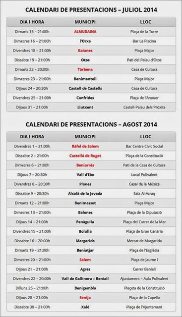 Acabat el mundial de futbol, la gira literària Camins Blaus enarbora l’estendard de la mitja lluna i es posa de nou en marxa per recórrer els pobles més menuts i deliciosos de la nostra geografia. Sí, aquest estiu “el Blau” prendrà els nostres carrers i les presentacions de la novel·la es faran a la fresca, acompanyades –quan siga– d’un soparet de germanor i pels acords de la guitarra i la preclara veu de Vicent Savall, cantautor saforenc que canta a la nostra terra i a personatges valencians tan il·lustres com ara el visir al-Azraq, Ausiàs March, Roís de Corella i Joan Pellicer, entre altres.