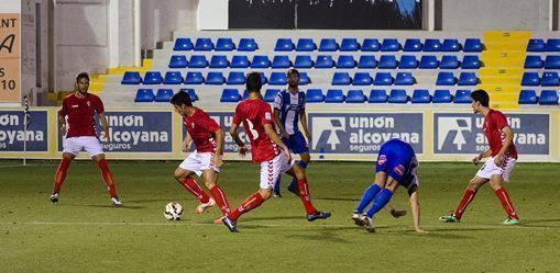 L’Alcoyano va saltar al terreny de joc amb Nacho Zabal, Víctor Mongil, Devesa, Mario Fuentes, Oscar López, Carles Salvador, Jorge Perona, Israel Jerez, Francis Ferrón, Javi Rubio (CP) y Bello.