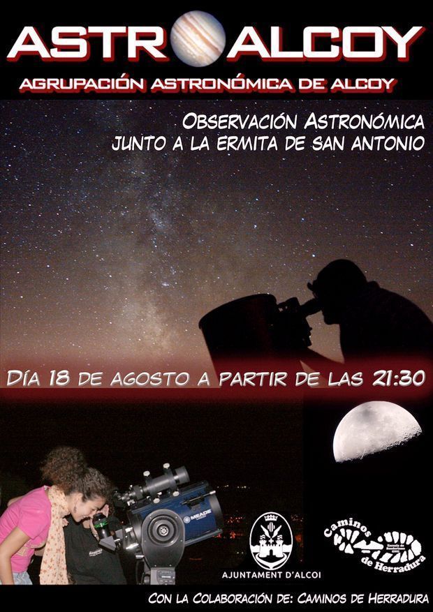 És per això que creiem que la millor data per a la nostra tradicional observació astronòmica nocturna estival, seria per al dilluns dia 18. L’activitat es realitzarà a la petita plaça que hi ha al final de la senda que hi ha a la dreta de l’Ermita de Sant Antoni. Aquesta activitat començarà a les 21:30H.