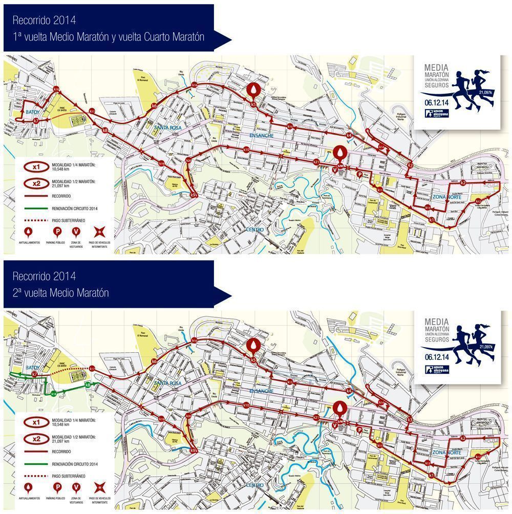 Recordem que les novetats d’esta edició han sigut el canvi d’imatge que la prova ha obtingut amb la nova cartelleria que es desenrotlla davall el lema ‘tu pones el esfuerzo, nosotros el camino’, mostrant la imatge d’un corredor alcoià, Óscar Sanchis membre d’APER Club, després de finalitzar una carrera. La fotografia ha sigut realitzada pel fotògraf alcoià col·laborador de la prova José Motilla. El segon punt important és el canvi de circuit en la modalitat Mitja Marató (21,097km) que farà que els corredors puguen baixar la seva marca entre un minut i minut i mig en referència a la seva marca de l’any anterior.