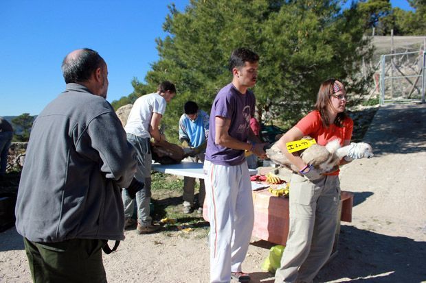 Els animals van ser capturats prèviament, amb la pertinent autorització de la Conselleria de Medi Ambient, fent servir l’aviari d’aclimatació com a un gran parany on els voltors, atrets pel menjar, entren sense massa recels.