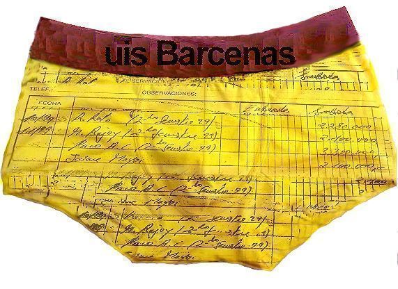 Però el ‘look Bárcenas’ no queda ací, fa uns dies es llançava pel mòdic preu de 2 duros, una línia de calçotets inspirats en els famosos papers fruit de la corrupció espanyola. Els calçotets pensats, són tant per a senyora com per a cavaller i ofereixen la possibilitat de personalitzar-les, de tal manera que el nom que es trie aparega entre els quals figuren en el llibre del comptable, junt a Rajoy, JM, Rato, etc…