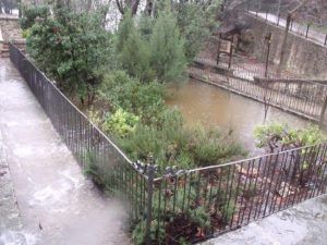 Ara mateix, l’aigua baixa desbordada per tots els barrancs, fonts i carreteres i el jardí ha recuperat (temporalment) la seua forma de piscina.