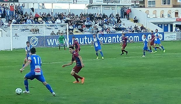 El magnífic aspecte que presentava el Collao no es va reflectir ni en bon joc, ni ocasions ni gols a la primera meitat. Els llevantinistes més necessitats en aquest partit, van ser els primers a avisar mitjançant Allison qui va estavellar l’esfèric a l’exterior de la xarxa; un poc després Ribelles va posar a prova al porter Miguel Bañuz, que amb felina intervenció va allunyar el baló a córner. Qui va agafar després la batuta v per part de l’Alcoyano va ser Álvaro García qui amb 3 bones assistències a Gato, David Torres i López Siva, aquest últim per a fer la centrada buscant de nou a David Torres, però en cap d’elles hi hauria conseqüències.