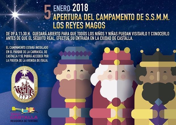 Castalla acollirà el seu Campament Reial perquè xiquets i grans puguen visitar-lo i contemplar com els ajudants dels Reis Mags, les seues carrosses i els seus animalets s’organitzen i descansen abans d’entrar a la ciutat. També podran gaudir d’un esmorzar popular.