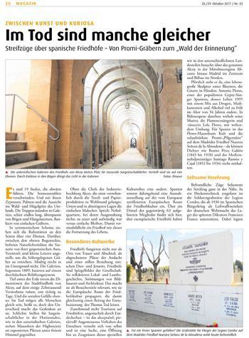 El Cementeri Municipal d’Alcoi, Sant Antoni Abad, s’ha donat a conéixer a Alemanya a través de diferents diaris. Diaris importants del país, com són Katholische Sonntagszeitung, Altöttinger Liebfrauenbote i Frankfurter Allgemeine Zeitung, han dedicat un seguit de reportatges amb referències directes.