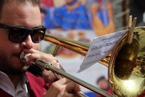 El primer dels dies de la Trilogia festera es va celebrar la Festa del Pasdoble, un desfile amb els músics com a protagonistes. En total van participar 24 bandes, 4 d’elles les alcoianes.