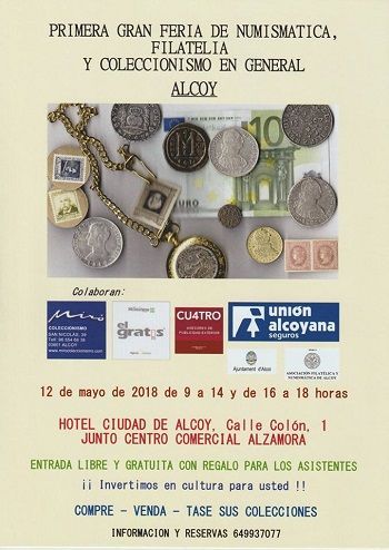 L’associació filatèlica i numismàtica d’Alcoi organitza cada any alguna exposició per dinamitzar i fomentar el col·leccionisme cultural. Enguany és la primera fira que organitza. A ella assistiran professionals i comerciants reconeguts de diversos municipis, com Madrid i Barcelona, afegint, a més, la possibilitat de taxar els objectes de col·lecció.