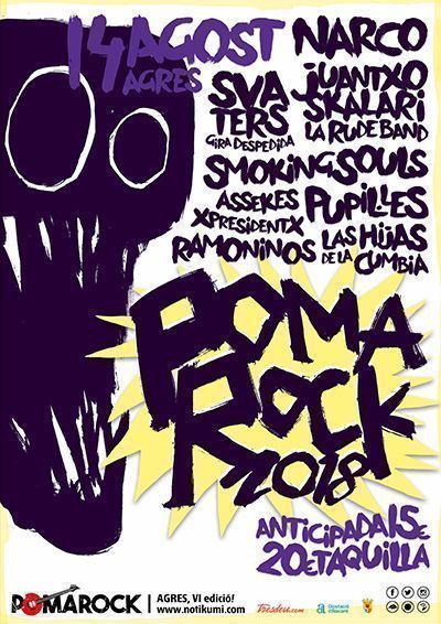 DIMARTS 14 D’AGOST – Nit de concerts: POMAROCK. Amb l’actuació de Narco, Juantxo Skalari i la Rude Band, Sva-Ters, Smoking souls, Ramoninos, Xpresident, Pupil·les, Assekes i Las Hijas de la Cumbia.