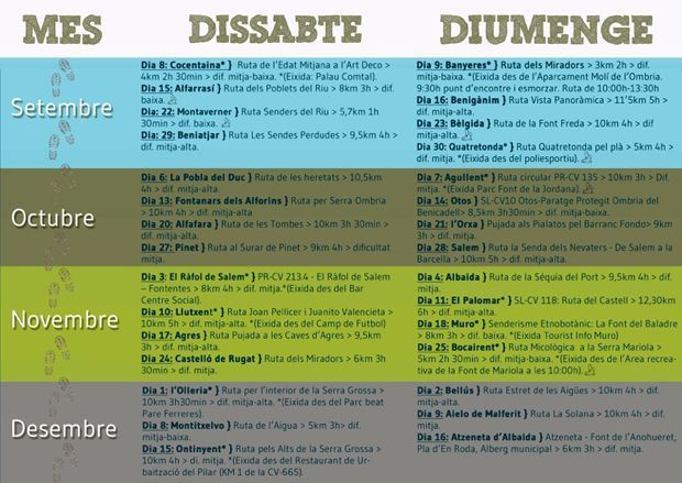 Les rutes es duran a terme durant els mesos de setembre a desembre i recorreran els principals paratges de les tres comarques els dissabtes i diumenges.