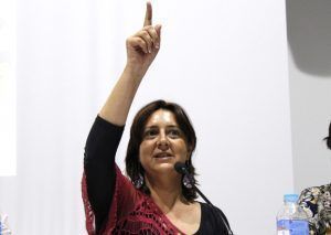 I en aquesta línia, significatives van ser les últimes paraules de la seua principal intervenció: “no confie en els polítics, a excepció dels companys de taula. Ni en el PSOE. En Unidos Podemos confie un poc. Però en qui confie de veritat és en vostès”, va dir dirigint-se a més de les dues-centes assistents, als qui va animar a continuar lluitant al carrer per les generacions esdevenidores.