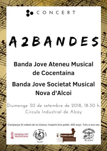 Les bandes joves de l’Ateneu Musical de Cocentaina i de la Societat Musical Nova d’Alcoi oferiran aquest diumenge, 30 de setembre, un concert en el Círculo Industrial d’Alcoi.
