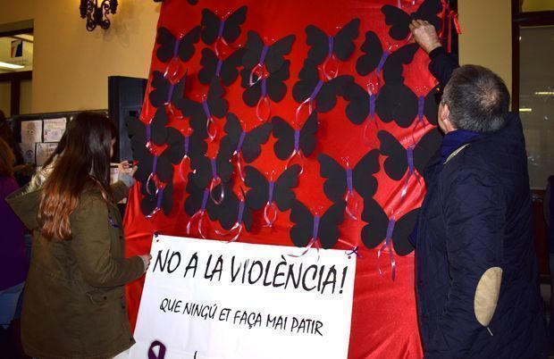 • A títol d'homenatge, s'ha realitzat la lectura de les més de 40 víctimes de la violència masclista d'aquest any 2018 • Al mateix torn, s'ha omplit, de manera simbòlica, un panell amb papallones, una per cada assassinat, que expressen l'empatia amb les víctimes