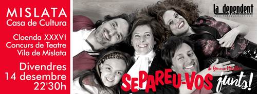 La companyia de teatre La Dependent està representant per tot el territori valencià la seua última comèdia, ‘Separeu-vos junts’. Una obra escrita per Gemma Miralles, i amb música de Carles Chiner, que recrea algunes de les situacions que poden viure els xiquets quan els seus pares se separen.