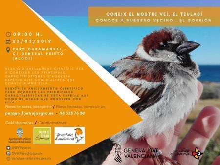 • El departament de Medi Ambient de l’Ajuntament d’Alcoi ha organitzat, junt amb la plataforma Salvem el Teuladí i el Grup Reiet d’Anellament • L’activitat tindrà lloc aquest dissabte 23 de març de matí, a les 9:00 h, al Parc Caramanxel. Cal realitzar inscripció