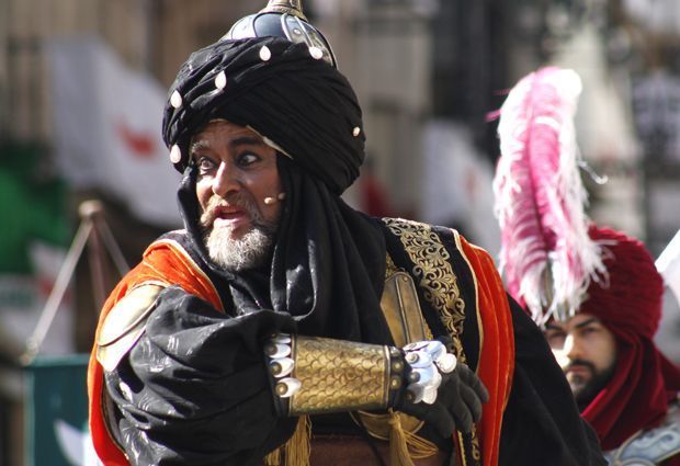 • Tots els actes de les festes d’Alcoi tenen components teatrals. Especial rellevància tenen en aquest sentit les Estafetes i les Ambaixades • Les hosts de la mitja lluna han intentat persuadir a les autoritats cristianes perquè els entreguen les claus del Castell.