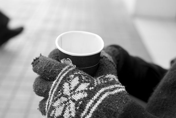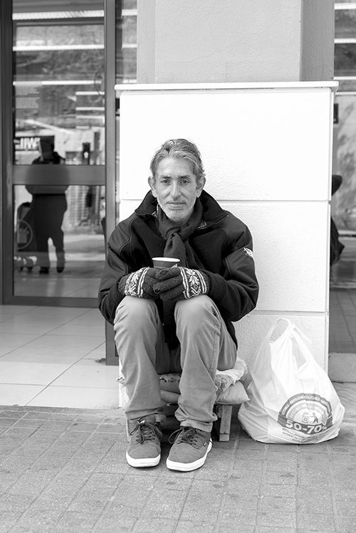 Mentre parlem, les seues cames no deixen de tremolar pel fred acumulat després de varies hores de seure al carrer. I uns guants li protegeixen les mans del mateix fred, un implacable enemic de tota la gent que viu en circumstàncies semblants a les d’ell.