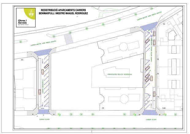 També es guanyaran places d’aparcament en Santa Rosa, en passar-se a aparcar en bateria en els carrers Benimarfull i Metge Manuel Rodríguez; en concret, hi haurà 10 places més.