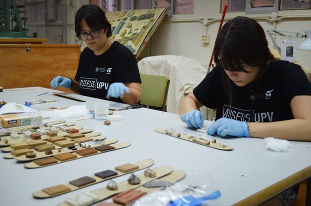 Beatriz Doménech és llicenciada en Belles Arts per la UPV i és una de les professionals encarregada d’aquesta restauració. Doménech comenta que, en primer lloc, han documentat les peces fotogràficament, han realitzat un estudi de l’estat de conservació i, posteriorment, les han intervingudes: “Ens encarreguem d’eliminar prèviament tota la pols mitjançant aspiració, després, amb goma d’esborrar, estem restaurant els materials més delicats. Anem mostra a mostra intervenint-los segons les necessitats que presenten”. Al costat de Doménech, els estudiants del Màster Universitari en Conservació i Restauració de Béns Culturals encarregats del projecte són Cynthia Liñana, Delia Todolí i Jakub Zelazowski. Aquest màster universitari pertany al Departament de Conservació i Restauració de Béns Culturals de la UPV.