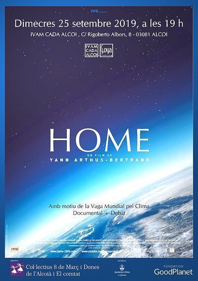 L’associació Col·lectiu 8 de març i Dones de l’Alcoià i El Comtat ha organitzat pel proper 25 de setembre la projecció del documental ‘Home’, una cinta de Yann Arthus-Bertrand. La projecció està prevista a les 19 hores a l’Ivam CADA Alcoi amb moti de la vaga mundial pel clima. L’acte compta amb la col·laboració de l’Ajuntament d’Alcoi -Goya Cineclub- i la Fundació Goodplanet. La cita seguirà amb un debat quan finalitze la projecció.
