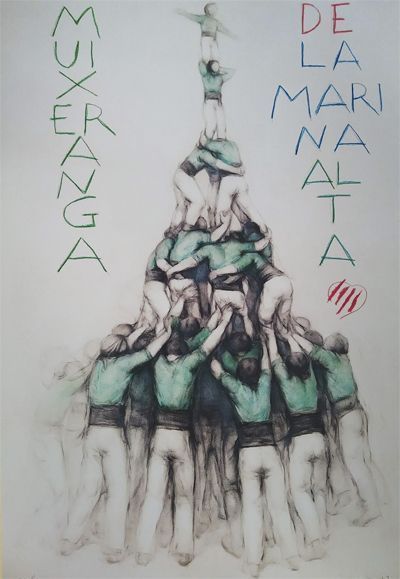 El reconegut artista Joan Castejón ha dedicat una obra a la Muixeranga de la Marina Alta, en concret a l’Alta de cinc, que van realitzar l’any passat al Festacarrer d’Ondara. Una composició reproduida en 100 litografies seriades, numerades i signades, que s’han personalitzat una a una, com ha explicat el propi Joan Castejón en la visita que ha realitzat a la Plaça de Bous d’Ondara (lloc on la Muixeranga de la Marina Alta va realitzar la figura), on s’ha presentat aquesta obra.
