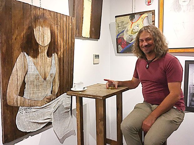 Dones sense rostre, materials reutilitzats i molt de colorit sobre fusta i taules de forner. Aquest és sense cap tipus de dubte el tret distintiu de l’artista Javier Pérez Vaquer, que ha inaugurat el passat dijous, 3 d’octubre, a la sala de la plaça d’Espanya, una mostra sobre el veïnat que fa vida dalt de sa casa, no sabem si a les proximitats del seu taller a Planes. Una exposició exquisita visitable fins el primer divendres del proper mes.