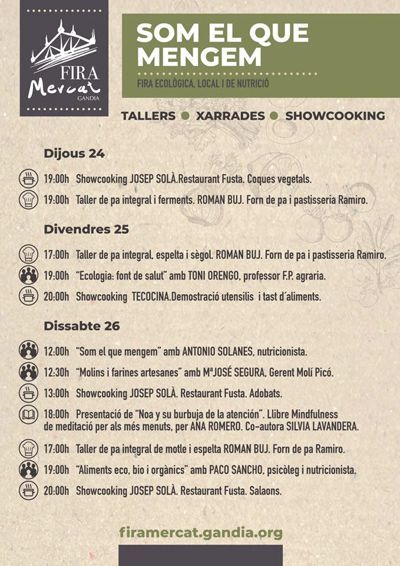 Al voltant de la fira també hi haurà una programació complementària amb quatre demostracions o Show Cookings, 4 xarrades, 3 tallers, la presentació d’un llibre, tasts…
