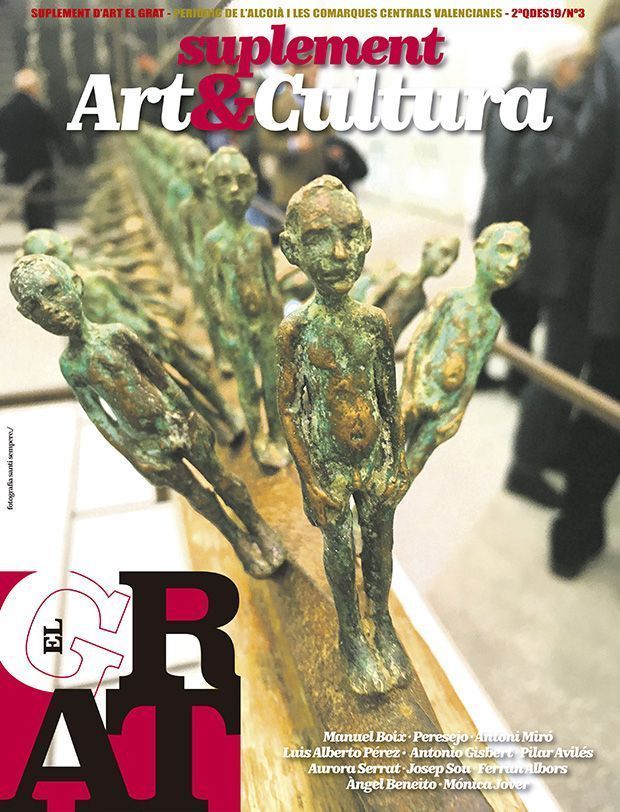 La portada del suplement és una foto d’una escultura de Manuel Boix, el qual ens visita en la Llotja Sant Jordi amb ‘La Nau de Caronte’, dintre del cicle d’exposicions d’Art, de la mà de l’Ajuntamet d’Alcoi i la Càtedra d’Antoni Miró.