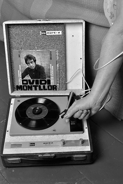 L’exposició volia ser un recull de fotos de l’Ovidi, explica. “No em vaig sentir capaç, no el conec; he fet un ‘teatre’ al voltant de l’Ovidi”. Són seccions; la primera és ‘la Tereseta’, amb material de Paco Grau, que ha fotografiat l’obra escrita per Jordi Botella, ‘Homenatge a T’. La segona són entrevistes realitzades a l’Ovidi, a Catalunya Ràdio, on apareix un transistor antic. L’altra anirà dedicada a la cançò, a través d’un tocadiscs, recuperant, entre d’altres, el concert a l’Olímpia, etc.