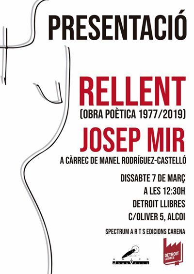 L’Associació d’Amigues i Amics de Joan Valls i Jordà ha organitzat la presentació de Rellent, el nou llibre de Josep Mir que arreplega la seua obra poètica entre els anys 1977 i 2019.