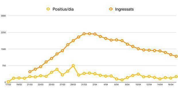 Pel que fa a nombre de positius veiem també una tendència a la baixa, des de l’1 d’abril, com també el nombre d’ingressos en hospital, un 50% menys des de l’1 d’abril,