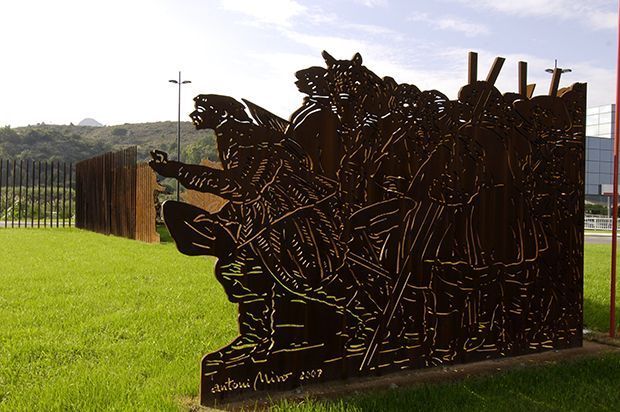 25 d’Abril és una data, ben singular, per cert, al nostre calendari emocional. Però també ho és el títol d’una magna escultura de l’artista Antoni Miró. Doncs bé, aquesta escultura: magnífica, colossal i força il·lustrativa d’un temps que encara ens visita sovint (aquest enrenou sembla no acabar-se mai), resta al sòl gandienc i emplaçada en un lloc certament arbitrari, tot per causa i efecte d’un trasllat forçat. Sí, forçat perquè varen haver d’arrancar-la d’allà on restava, tan amatent i admirada, i per la força incomprensible d’uns polítics esquifits, curts de gambals i i brutalment decantats vers el populisme sense sofisticació ni altura de mires: obtús, buit i estúpid. Per una altra banda (no paga la pena perdre temps en la anàlisi), com ho són tots els populismes. Aquell alcalde, del qual no volem recordar el nom, no ho mereix, i si ho fem serà per a mal, ha estat campió d’una colla d’insatisfets de mena, i li posà, amb gosadia i iracúndia, la mà a sobre en aquesta escultura, i perpetrà una inèpcia i una salvatjada contra la cultura, contra l’art i contra els sentiments d’un poble i d’una gent. La feu ben grossa. I per a ell, i tot el seu seguici, ara, el menyspreu.
