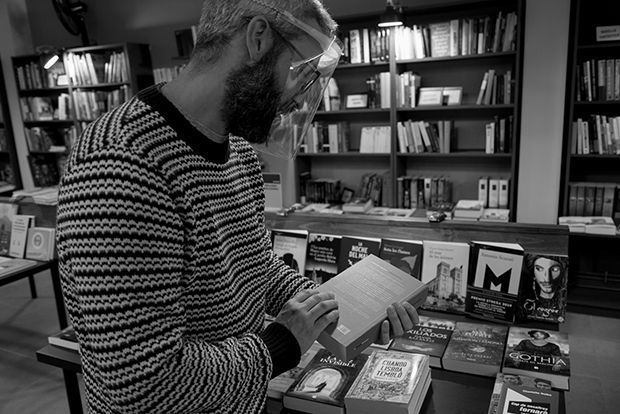 Ara, en aquests dies del coronavirus, els llibrers afronten la nova realitat de la vida quotidiana. Al seu establiment es poden trobar els mateixos elements que a tots els comerços: el gel a l’entrada per rentar-se les mans i una mampara darrere de la que atendre als clients.