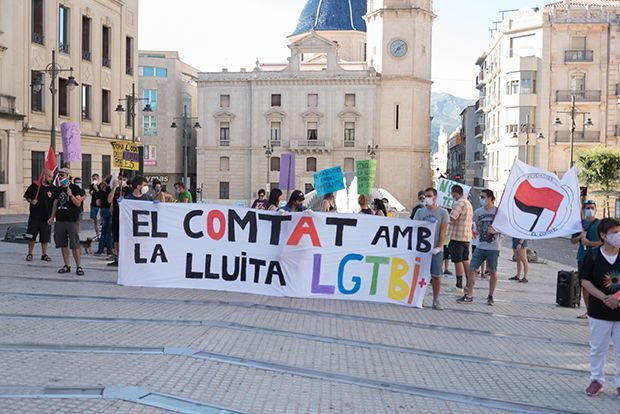 A Alcoi el col·lectiu LGTBI MARIola amb el suport de diferents col·lectius feministes, antifeixistes i altres grups de joves de diverses comarques, es van reunir vora 300 persones per a commemorar el 28 de Juny, el dia de l’Orgull LGTBIQ+ 2020.