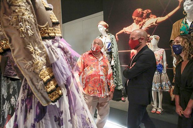 Tot este travelling que recorre l’aventura vital del creador valencià, en la qual no falten la ironia i el folklore, forma el nucli d’una exposició que compta amb les fotos de l’exclusiu Helmut Newton, les experiències cinematogràfiques amb mestres com Almodóvar i Berlanga o la fusió del ballet de Nacho Duato i el flamenc en les passarel·les i desfilades.