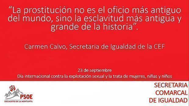 Els socialistes de la Muntanya inicien una campanya contra l’Explotació Sexual i el Tràfic de Dones, Xiquetes i Xiquets