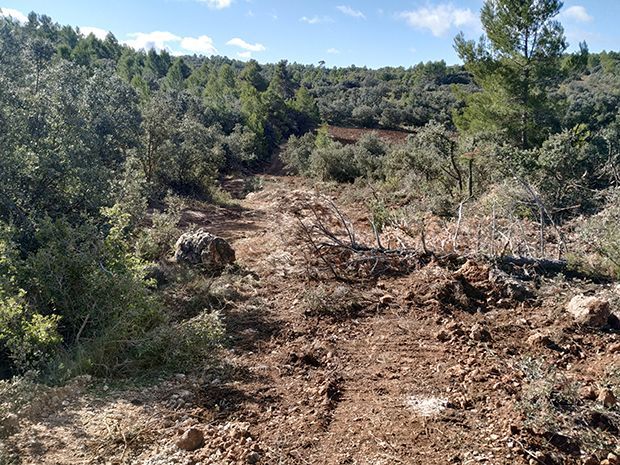 A més, expliquen, que han observat que s’han obert unes rases en la meitat de la massa forestal i algun abancalat per tal de portar, en un futur, la llum i l’aigua des d’una altra finca de la seua propietat.