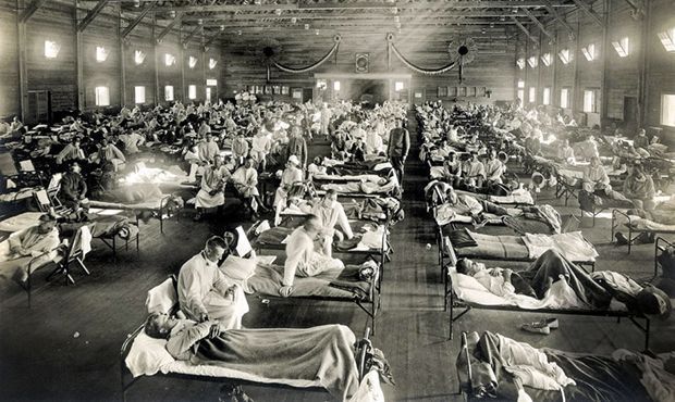 El segle XX alcoià arrancava amb una epidèmia de grip, que s’estendria al llarg dels anys 1918 i 1919. Les altes densitats de població i l’elevada quantitat de treballadors que es concentraven en fàbriques i tallers formaven una letal combinació, que va contribuir a intensificar els efectes d’una malaltia que es transmetia per l’aire. Mentre les autoritats realitzaven anàlisis bacteriològiques de l’aigua i de l’aire, s’establien fortes mesures restrictives, com la prohibició de qualsevol espectacle públic o de totes les concentracions de gent. L’Arquebisbat exigia als sacerdots la renovació contínua de les reserves de les piles d’aigua beneïda de les esglésies i es recomanava als veïns intensificar la neteja corporal. La junta local de sanitat va tancar les escoles públiques, però va mantindre oberts els centres de titularitat privada, circumstància que va provocar un justificat debat ciutadà. Van arribar a vetar-se les visites al cementeri durant la festivitat de Tots els Sants.
