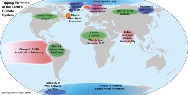És un punt de no retorn, d’inflexió en l’equilibri d’un element o subsistema significatiu (permafrost, Amazones, la circulació termohalina, Groenlàndia) una vegada sobrepassat genera un canvi de fase, portant al sistema a un nou estat que pot -o no- ser d’equilibri. Hi ha 15 especificats i 9 d’ells estan en fase de degradació o ja sobrepassats. Entre ells s’interrelacionen provocant trencades d’efectes.