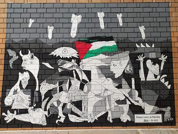Les Amigues i Amics de Palestina d’Alcoi, han pintat un mural en la zona Santa Rosa davant del Parc del Romeral, on han volgut reflectir que “com el Guernica és el símbol de l’atac per a destruir a un poble, el mateix està passant a Palestina, una gran potencia com és el govern sionista israelià, atacant un lloc on ni es pot entrar ni eixir”.