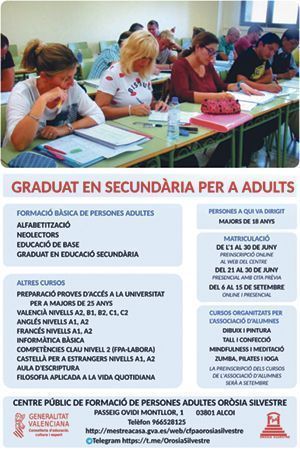 Són moltes les persones que per circumstàncies han de traure’s el graduat escolar quan ja són adults, i per a ajudar-los amb aquesta formació està el Centre Públic de Formació Permanent d’Adults ‘Oròsia Silvestre’.