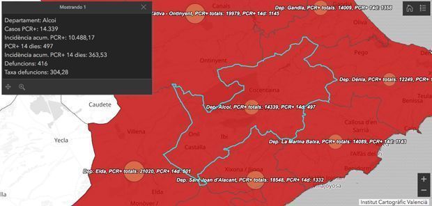 La incidència del departament de Salut d’Alcoi és de 363