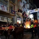 El dia 5 de gener al matí, els xiquets poden visitar el Campament Reial instal·lat en la zona del Preventori, mentre que a la vesprada, els Reis Mags entraran a la ciutat junt amb els seus patges, que pugen els regals per llargues escales als balcons de les cases per a deixar els regals dels xiquets. Una vegada en la Plaça d’Espanya, al voltant de les 20:30 hores, la Cavalcada es deté uns instants perquè Ses Majestats puguen apropar-se a adorar el ‘Jesuset’. Tot açò mentre s’interpreta ‘El Mesíes’ de Händel i un castell de focs d’artifici al mateix temps que sonen les campanes de l’església de Santa Maria.