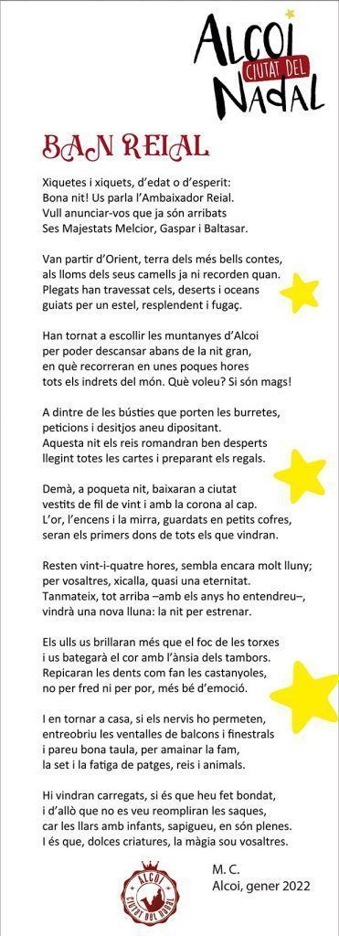 Com és tradició a Alcoi, en la vesprada del dia 4 de gener, els xiquets, xiquetes, però també els més majors, entreguen la seua carta amb els seus desitjos per als Reis Mags. Enguany ja s’ha pogut tornar a celebrar aquest acte, que durant l’any passat es va haver de suspendre a causa de la pandèmia.