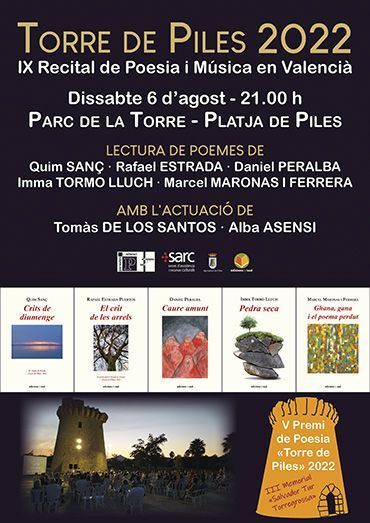 Tal com s’ha vingut realitzant en edicions anteriors, la nit del dissabte servirà per a donar a conéixer el nom de la persona guanyadora del V Premi de Poesia «Torre de Piles» i el títol de l’obra que serà publicada en la col·lecció «Paraules en silenci» d’Edicions del Sud.