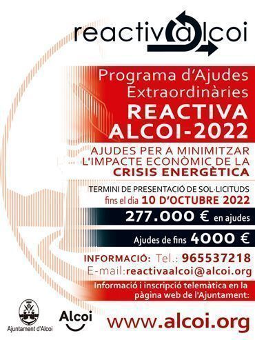 L’Ajuntament d’Alcoi ha publicat una nova convocatòria d’ajudes per a poder ajudar a les pimes, micropimes, empresaris autònoms i professionals de la ciutat, a pal·liar l’impacte econòmic que ha provocat la crisi energètica. Es tracta d’un programa que el consistori ha posat en marxa amb una partida de 277.040 euros, procedents d’una subvenció de la Diputació d’Alacant.