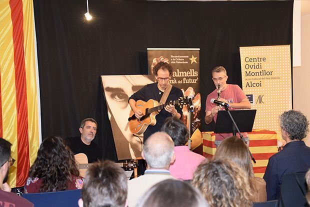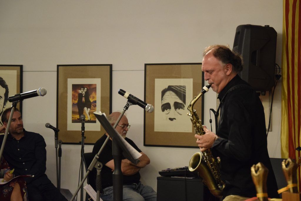 Després de les paraules a l’Ovidi, va sonar una composició esplèndida de Moisés Olcina amb el seu saxo, que va interpretar la poètica de l’artista amb “Tot Ben Senzill” -soliloqui sobre notes d’Ovidi.