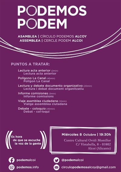 Sé que precisament jo no sóc la millor per defensar que necessitem estar en política, no debades vaig fracassar. Vaig entrar a la política institucional perquè pense que mereixem una altra cosa, però no vaig tindre prou en compte que la política institucional està feta per persones que no volen que ningú de fora entre, ni canvie res del mode en com es guanyen la vida. Crec que la meua experiència (i la de tantes altres) serveix per a tindre clar que amb mals polítics prenent decisions per a totes i tots, poques coses bones ens esperen. I sobretot serveix per a mostrar que només si som moltes podrem canviar alguna cosa. Estic segura que podem imaginar una vida millor per als alcoians i alcoianes. I necessitem fer-ho juntes i ja, perquè són altres els que estan imaginant una vida millor on nosaltres –el conjunt dels alcoians i alcoianes- només som uns figurants. La solució a un món fet a la seua mida no serà fàcil ni ràpida. Però només serà possible si ens posem moltes i ens posem ja. Perquè un ajuntament és cabdal per disminuir o augmentar els nostres malestars. No el podem deixar en mans de qualsevol.